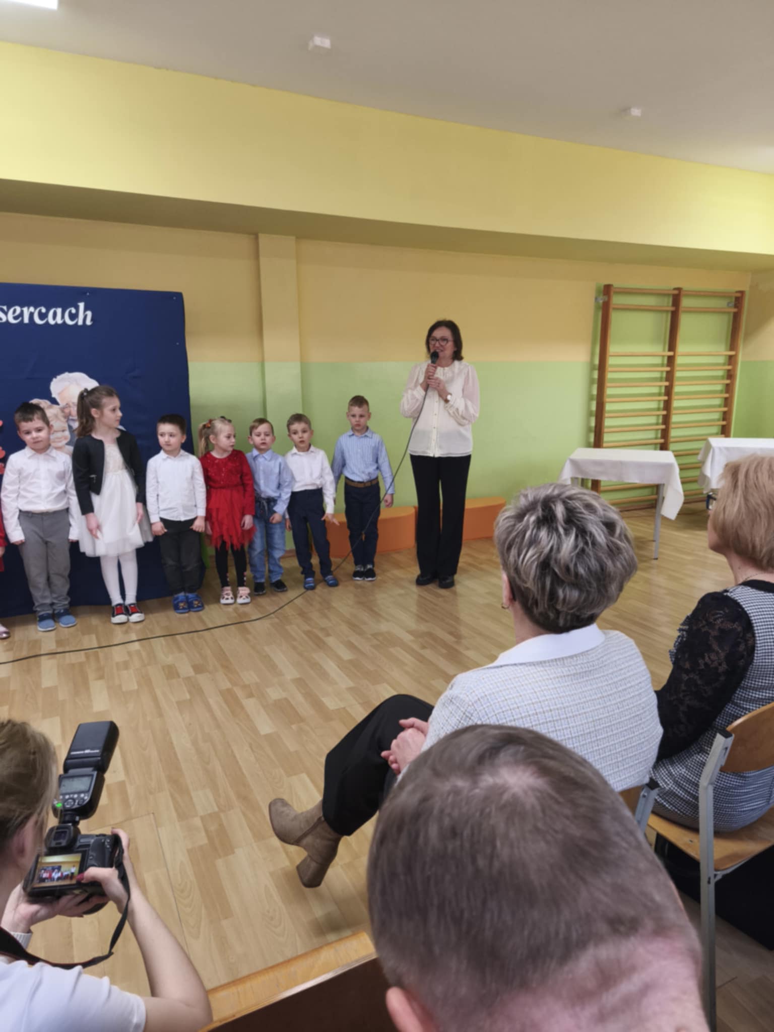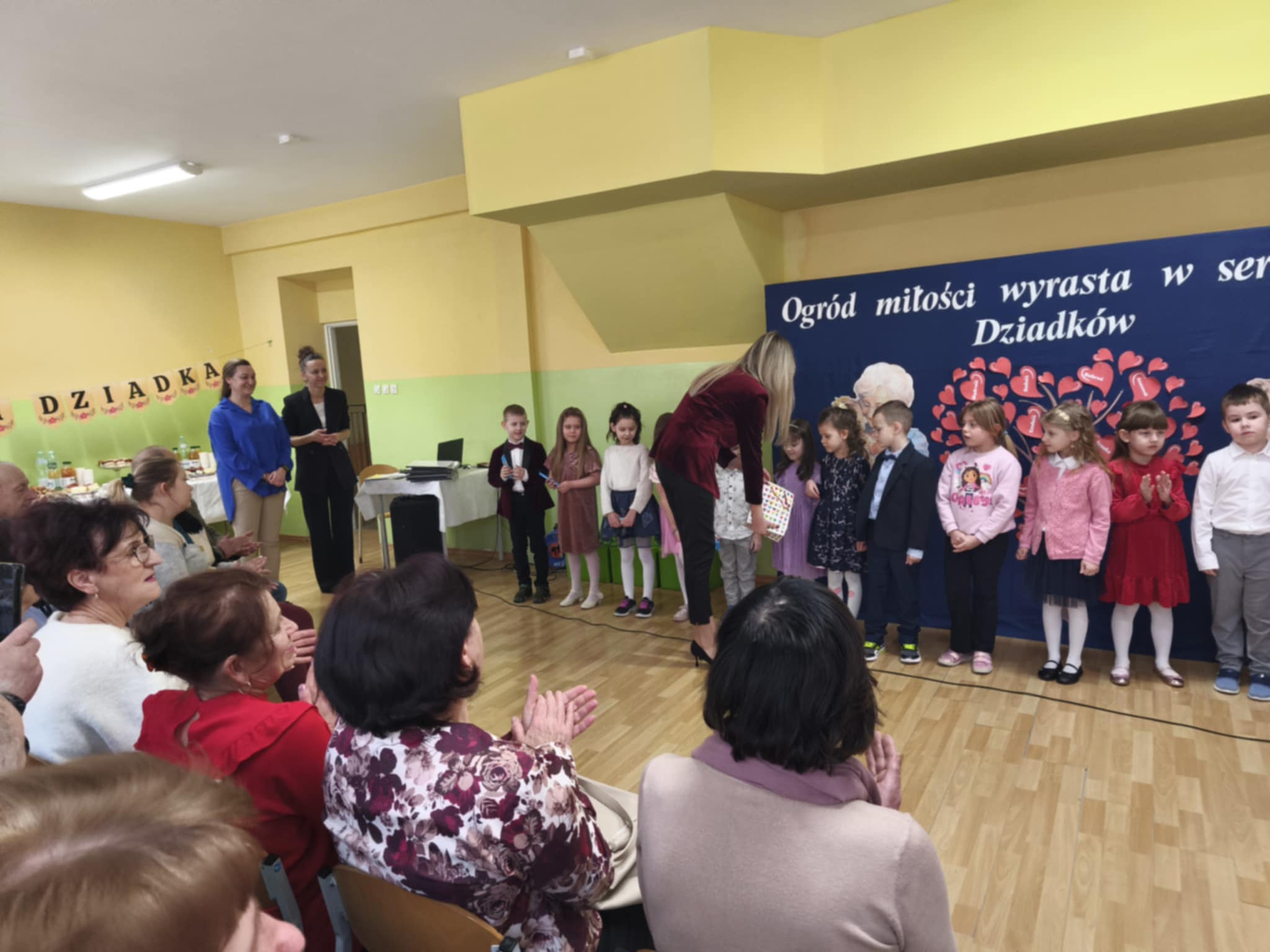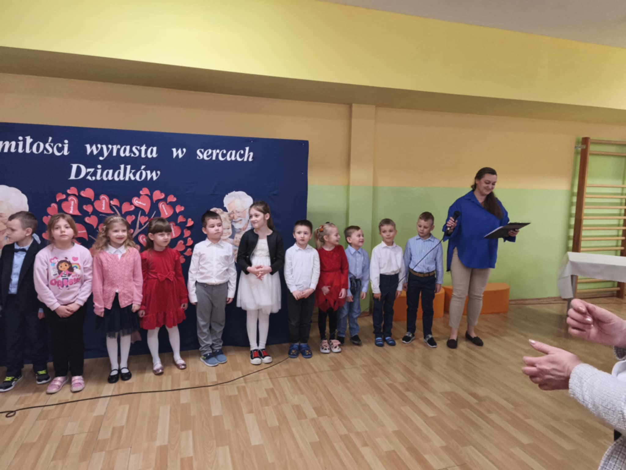 Dnia 11 lutego 2026 roku w Oddziale Przedszkolnym naszej szkoły odbyła się uroczystość z okazji Dnia Babci i Dziadka. Było to wyjątkowe i pełne wzruszeń spotkanie, podczas którego najmłodsi uczniowie z radością zaprezentowali przygotowany program artystyczny. Dzieci z ogromnym zaangażowaniem recytowały wiersze, i śpiewały piosenki wyrażając w ten sposób swoją miłość i wdzięczność wobec ukochanych Dziadków. Po części artystycznej dzieci wręczyły swoim Babciom i Dziadkom przygotowane upominki, które były pięknym wyrazem ich serdecznych uczuć. Następnie wszyscy goście zostali zaproszeni na słodki poczęstunek, który stał się okazją do wspólnych rozmów i spędzenia miłych chwil. Uroczystość przebiegła w serdecznej i pełnej radości atmosferze, a na twarzach zaproszonych gości nie brakowało uśmiechu i dumy. Był to piękny czas wspólnego świętowania, który na długo pozostanie w pamięci zarówno dzieci, jak i ich bliskich.