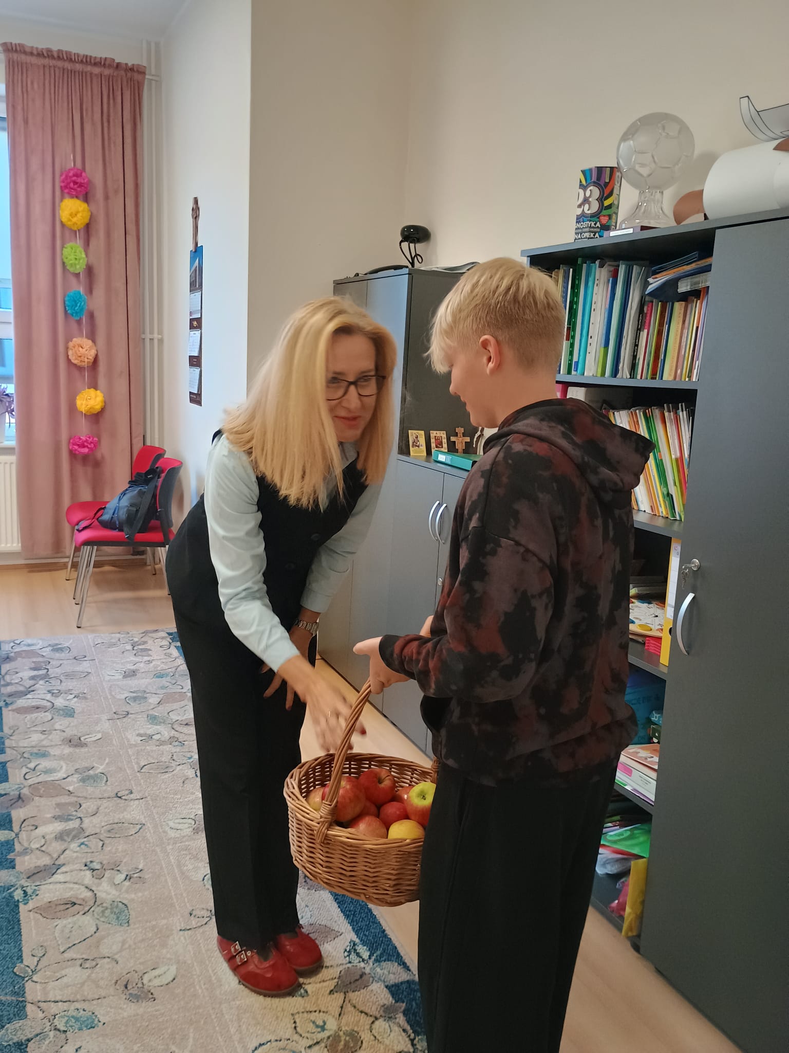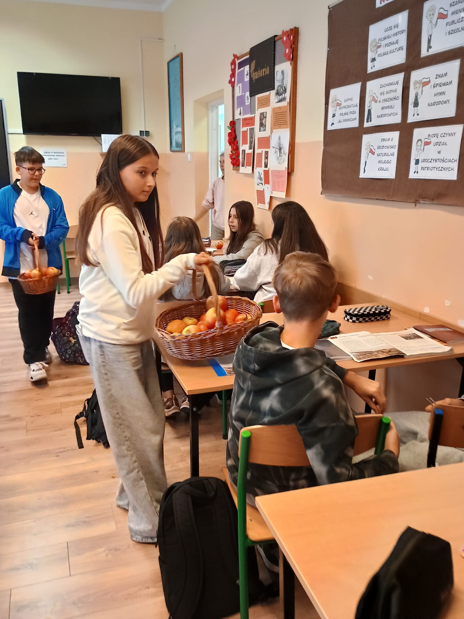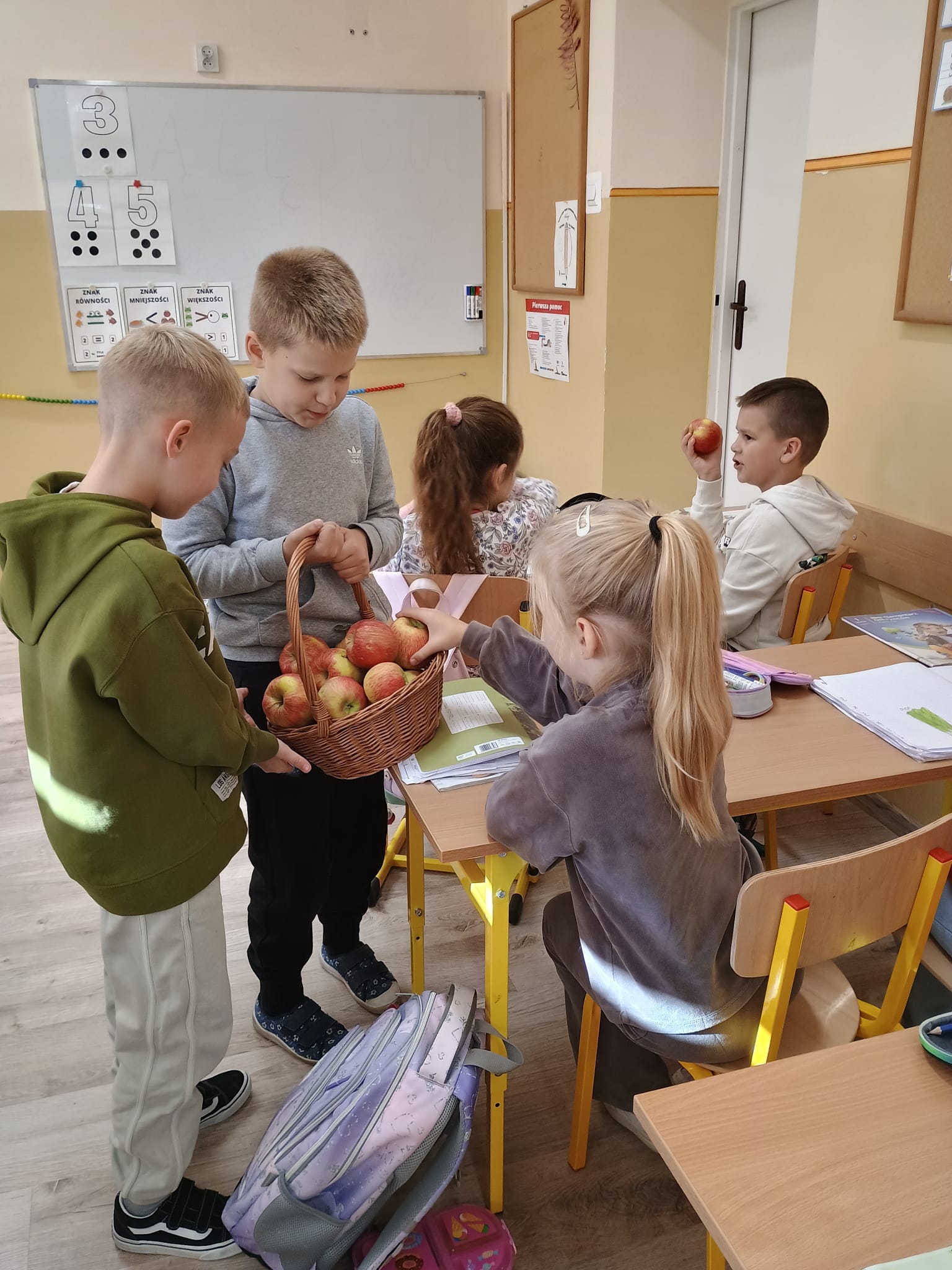 W dniu 29.09.2025 r. Samorząd Uczniowski zorganizował „Dzień Jabłka”- wydarzenie, którego celem było zachęcanie dzieci już od najmłodszych lat do spożywania owoców, a w szczególności jabłek i to pod różnymi postaciami, z powodu jego walorów zdrowotnych i odżywczych. Na szkolnych korytarzach i w klasach zapachniało sadem, a każdy mógł poczęstować się smacznym jabłkiem ufundowanym przez Szkolny Samorząd Uczniowski, za co bardzo dziękujemy. Dzień minął w "smakowitej" atmosferze i dostarczył miłych wrażeń oraz witamin.