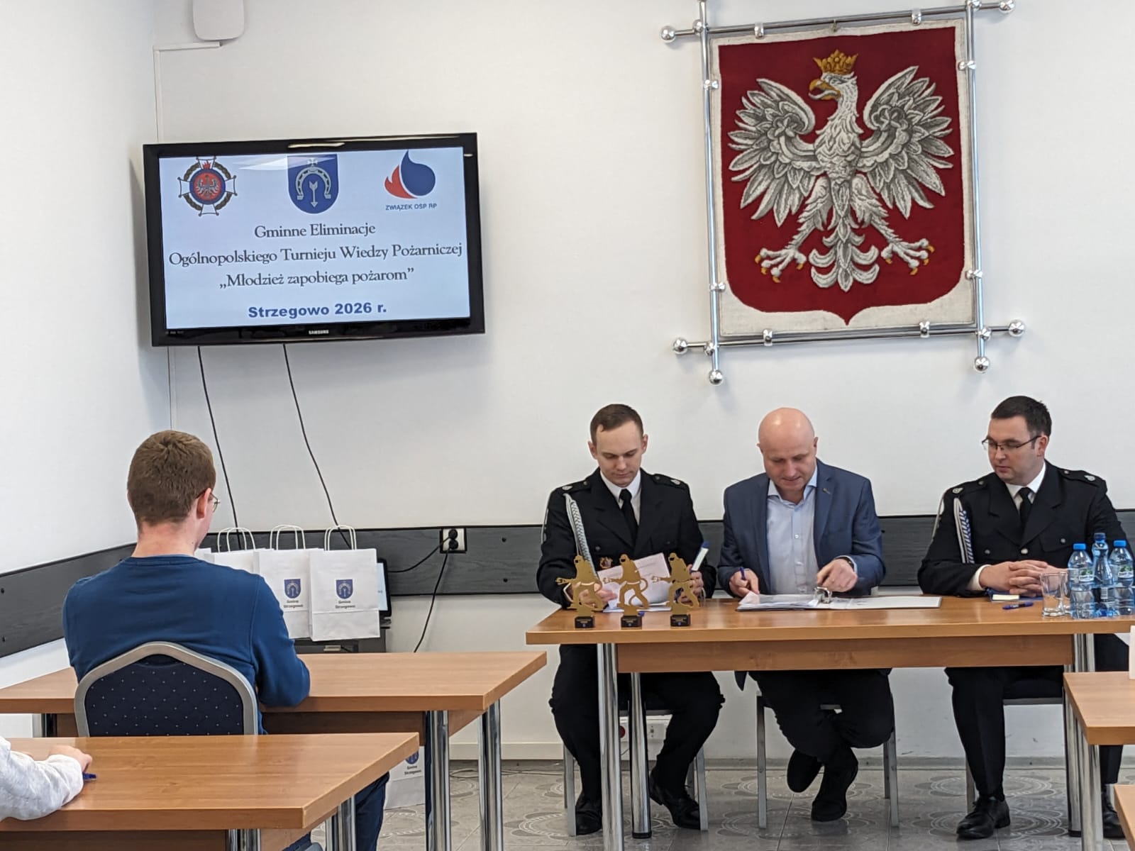 20 lutego 2026 r. w Urzędzie Gminy Strzegowo odbyły się eliminacje gminne XLVIII Edycji Ogólnopolskiego Turnieju Wiedzy Pożarniczej pod hasłem „Młodzież zapobiega pożarom”. W konkursie wzięli udział uczniowie Szkoły Podstawowej w Strzegowie oraz Liceum Ogólnokształcącego w Strzegowie, wykazując się bardzo dobrą znajomością przepisów przeciwpożarowych, zasad bezpieczeństwa, ekologii oraz historii pożarnictwa.