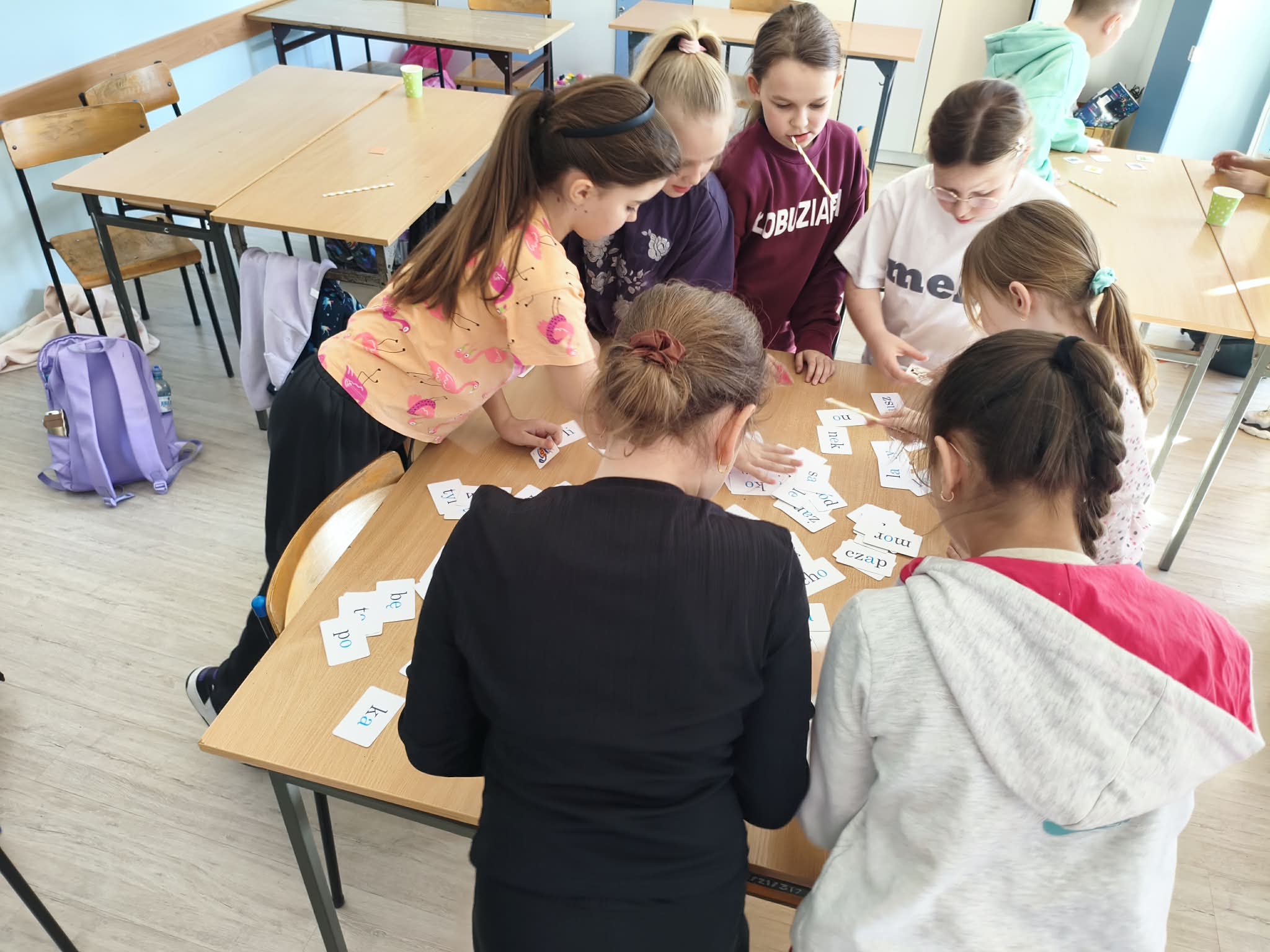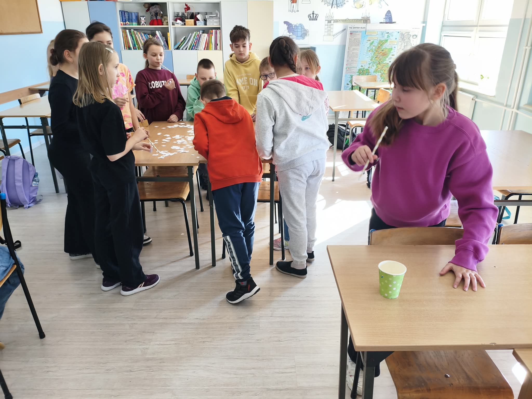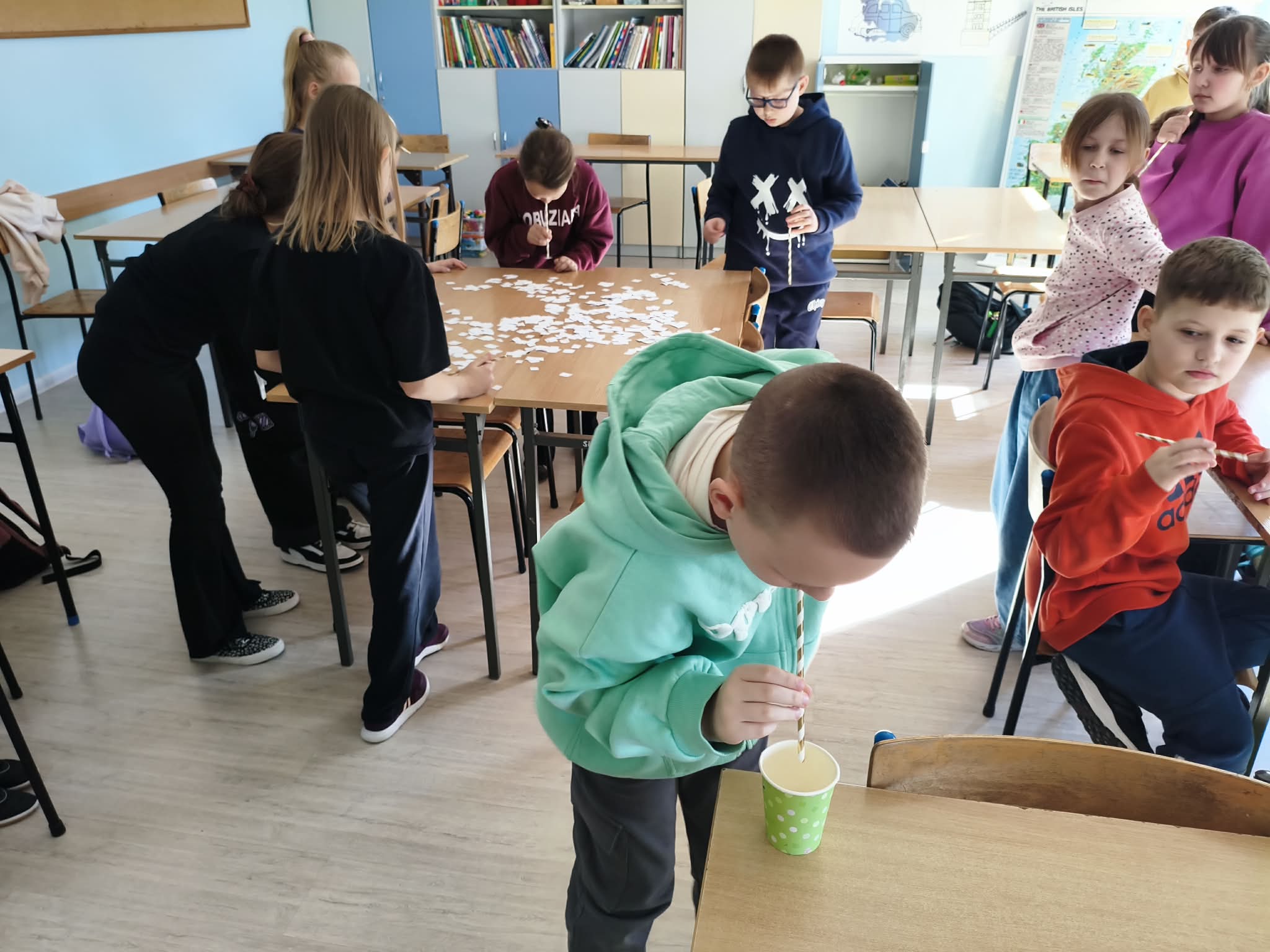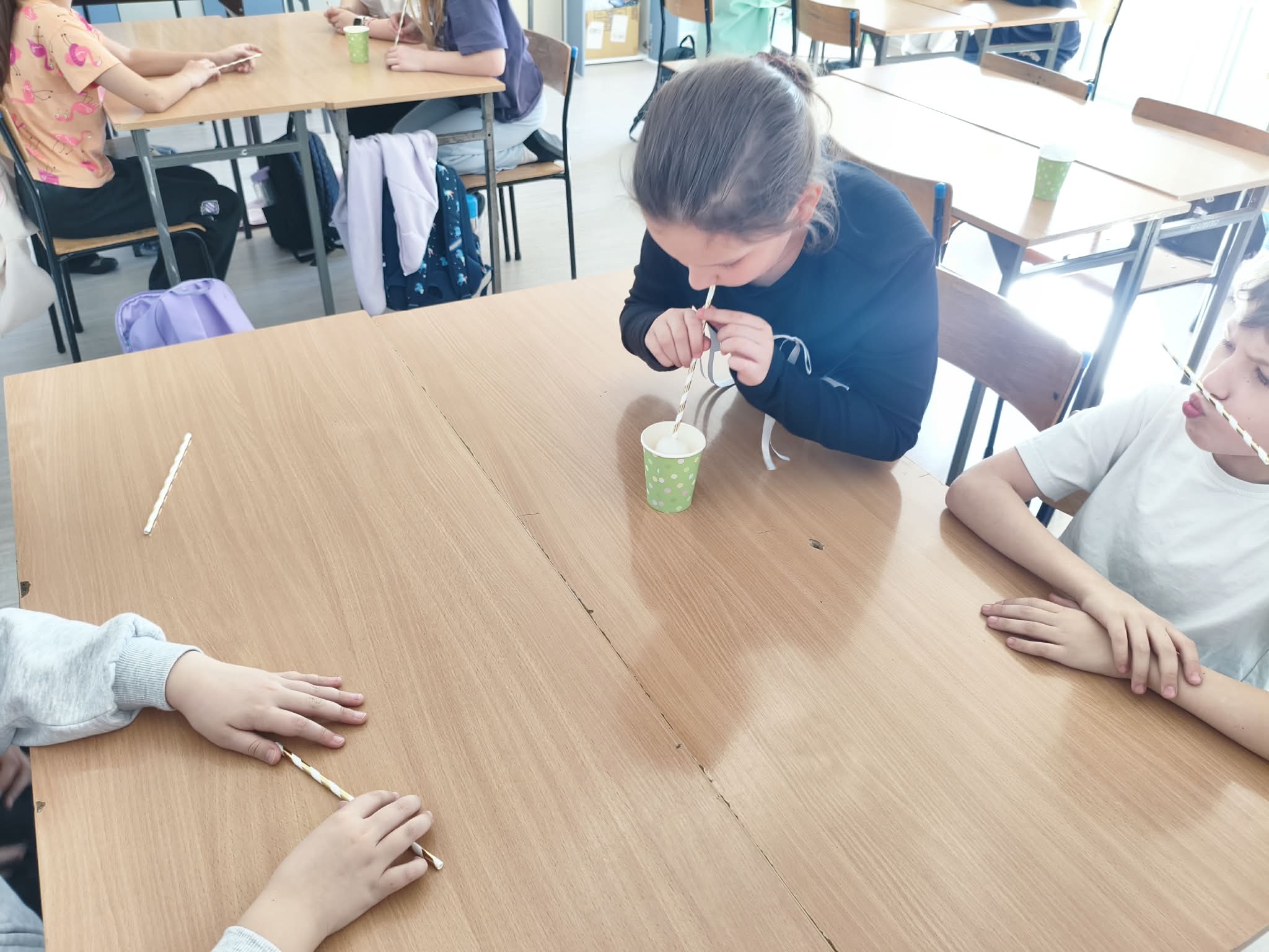 Nie zabrakło również wesołych ćwiczeń buzi i języka – gimnastykowaliśmy nasze aparaty mowy, robiliśmy śmieszne miny, dmuchaliśmy, parskaliśmy i ćwiczyliśmy prawidłowe oddychanie. Było dużo śmiechu i świetnej zabawy, a przy okazji ważnej nauki. Dużym zainteresowaniem wśród dzieci cieszyły się ćwiczenia oddechowe z wykorzystaniem słomek, piórek, karteczek i piłeczek.