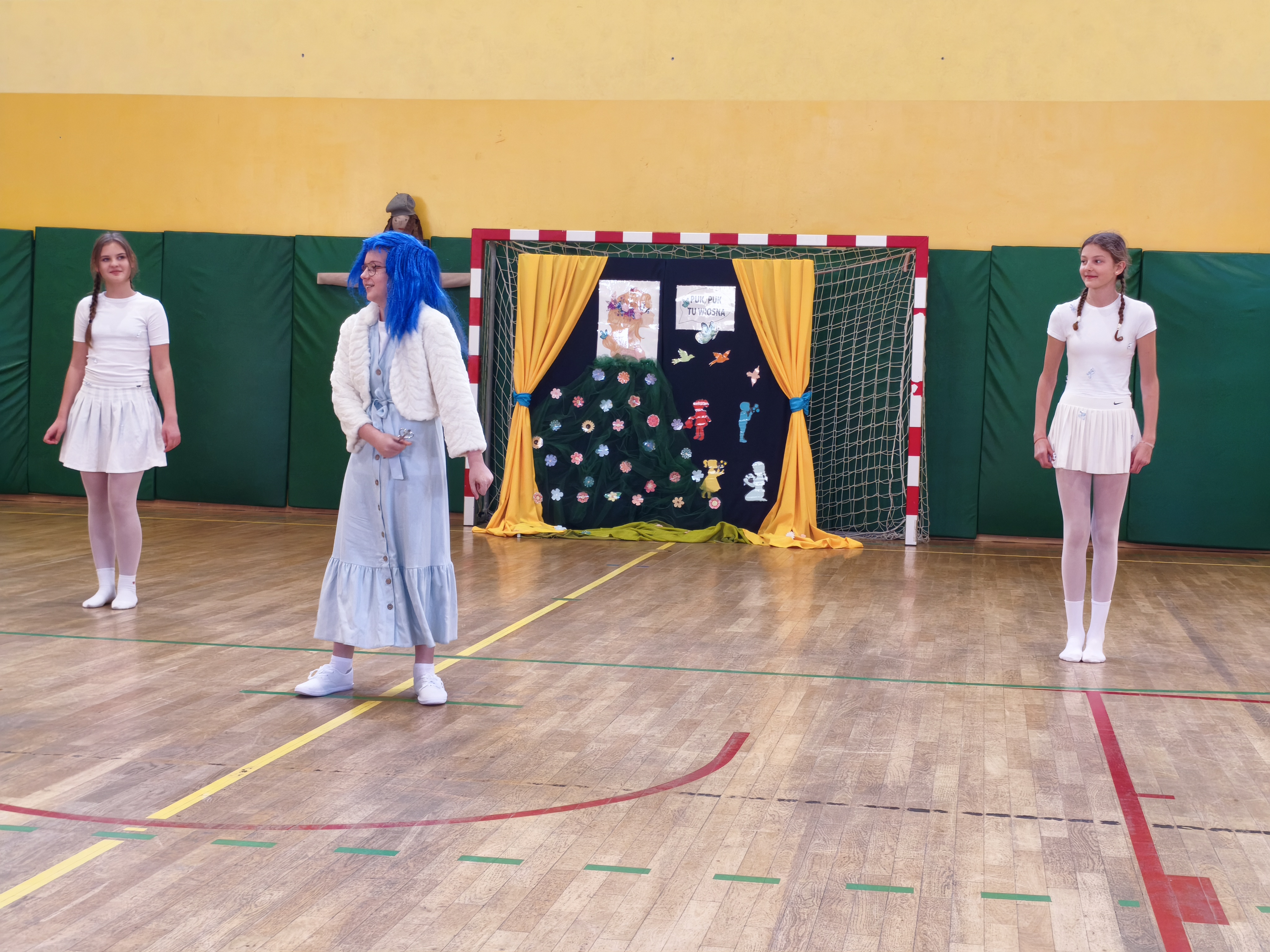 Następnie hala sportowa zamieniła się w prawdziwą scenę artystyczną. W ramach powitania wiosny uczniowie klas 4–8 prezentowali swoje talenty – od występów muzycznych i tanecznych, po krótkie scenki i pokazy kreatywne. Publiczność nie szczędziła braw, doceniając odwagę i zaangażowanie występujących. Nasi starsi uczniowie mieli również okazję pożegnać zimę przez utopienie Marzanny.