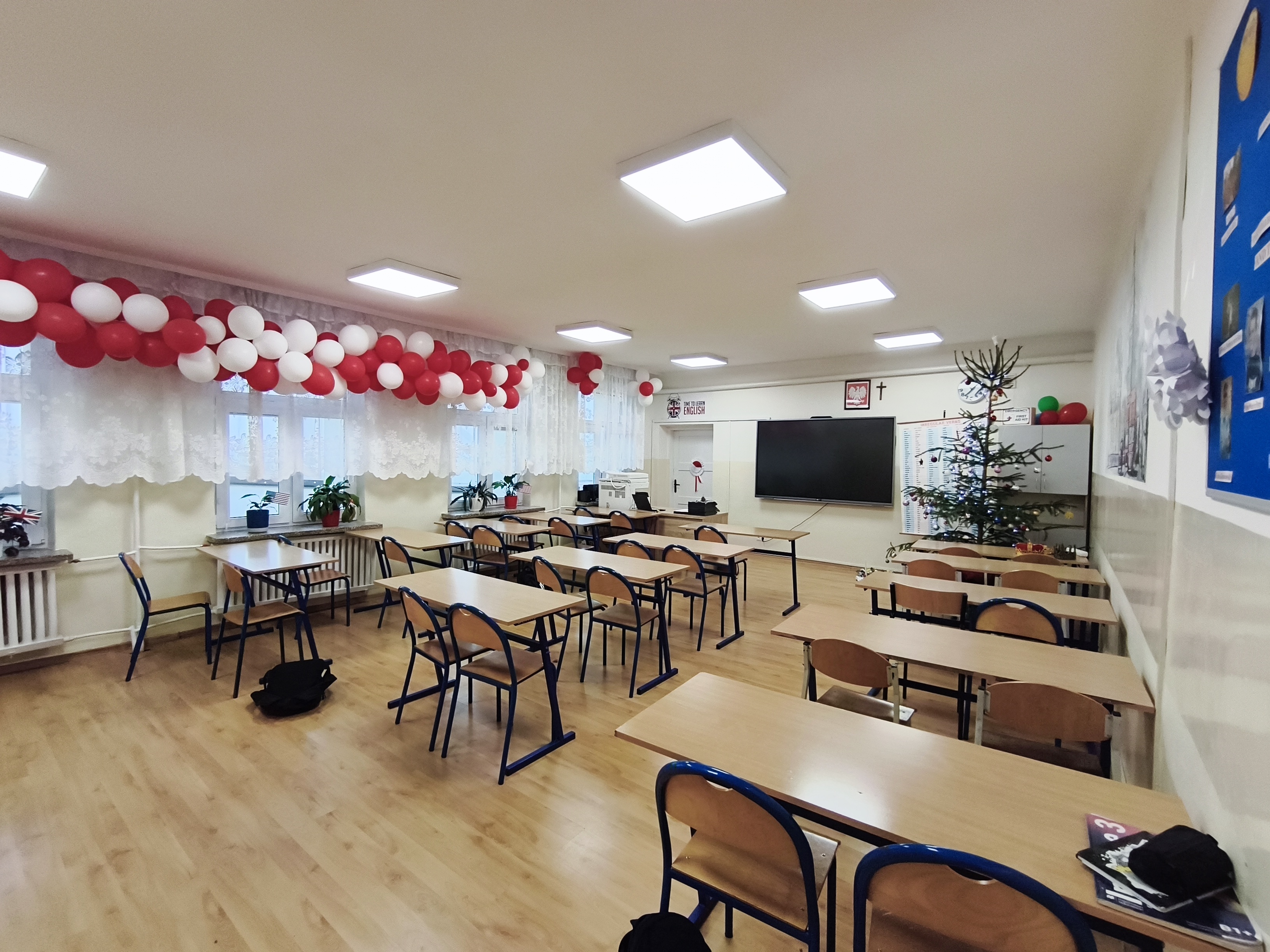 - wyremontowane sale lekcyjne (nowe oświetlenie, Internet, zabudowa rur, malowanie i tapetowanie ścian, nowe meble, nowe ławki i krzesła w sali 23 , 24, 25, 27);