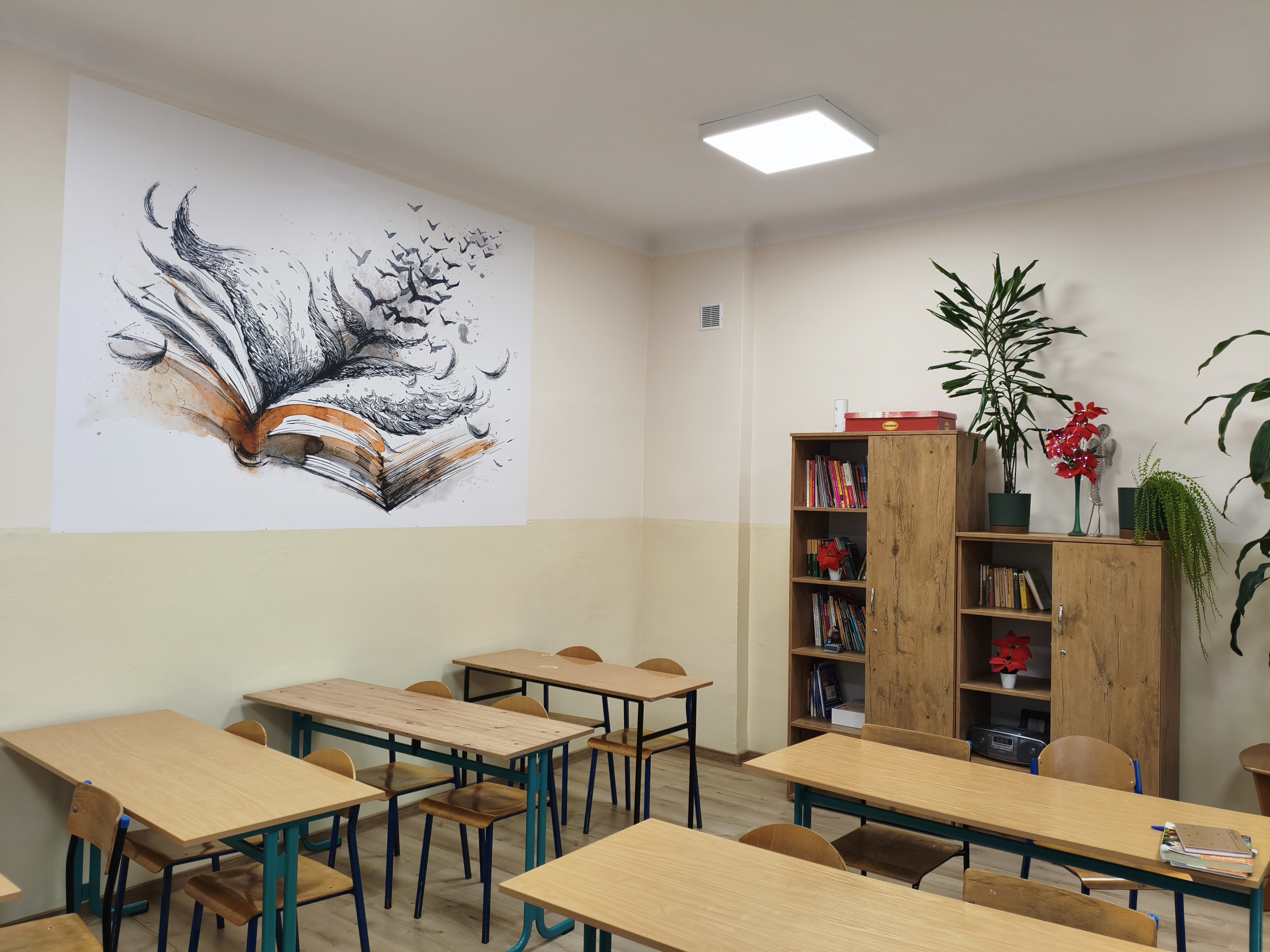 - sala nr 4 i nr 5 (wymiana oświetlenia, podłączenie Internetu, remont ścian i sufitu);