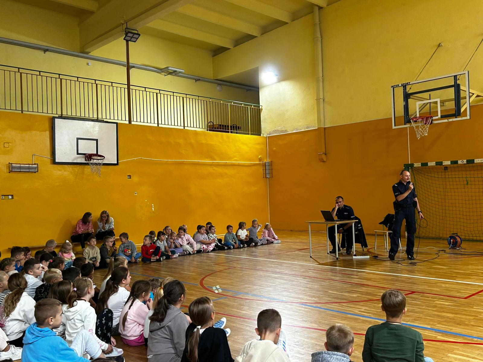 W minionym tygodniu uczniowie klas 0–3 uczestniczyli w wyjątkowym spotkaniu z przedstawicielami policji. Funkcjonariusze opowiedzieli dzieciom o zasadach bezpiecznego poruszania się po drodze, szczególnie tam, gdzie nie ma chodnika. Dużą uwagę poświęcono również właściwemu zachowaniu na przejściu dla pieszych oraz zasadom korzystania z hulajnóg elektrycznych.
