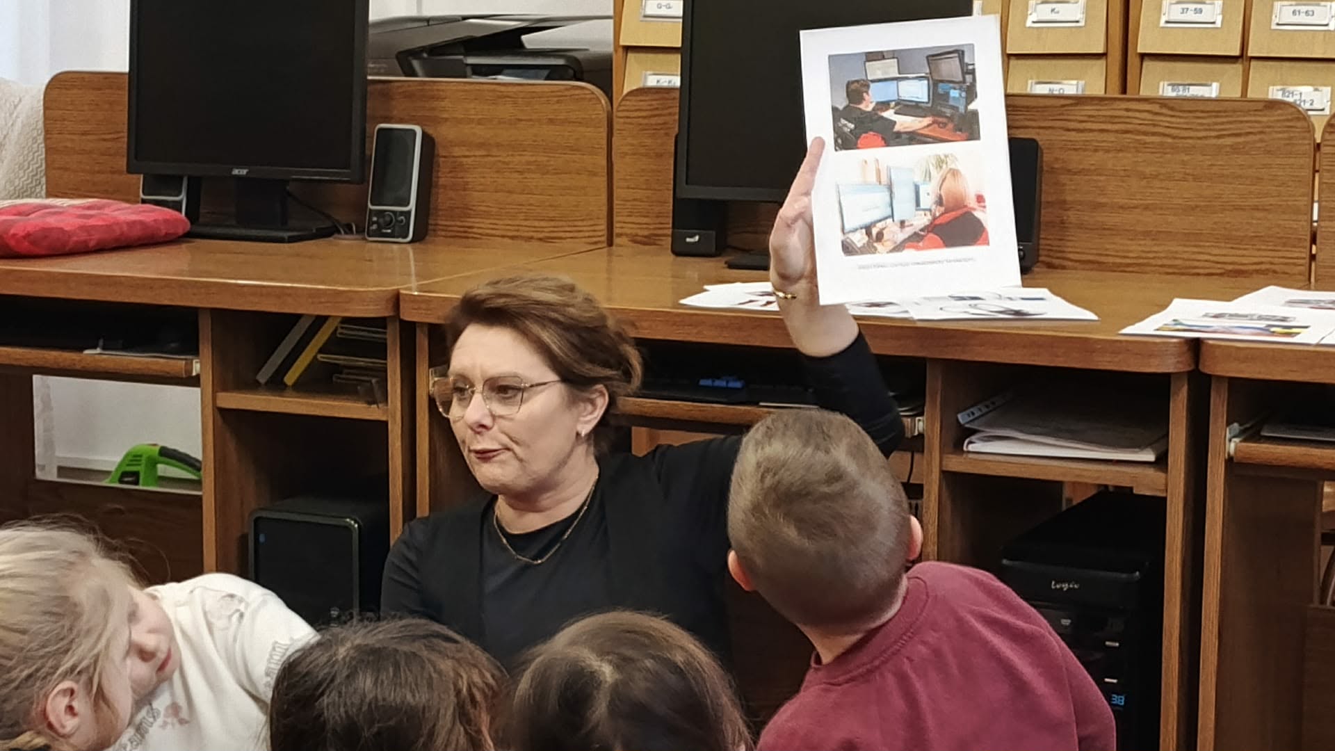 Wizyta w bibliotece była również świetną okazją do nauki praktycznych umiejętności. Panie Bibliotekarki przeprowadziły z uczniami warsztaty z pierwszej pomocy. Pierwszoklasiści dowiedzieli się: Jak skutecznie wezwać pomoc, dzwoniąc pod numer alarmowy 112. O jakich najważniejszych informacjach należy pamiętać podczas rozmowy z dyspozytorem. Jak zachować spokój w trudnych sytuacjach.