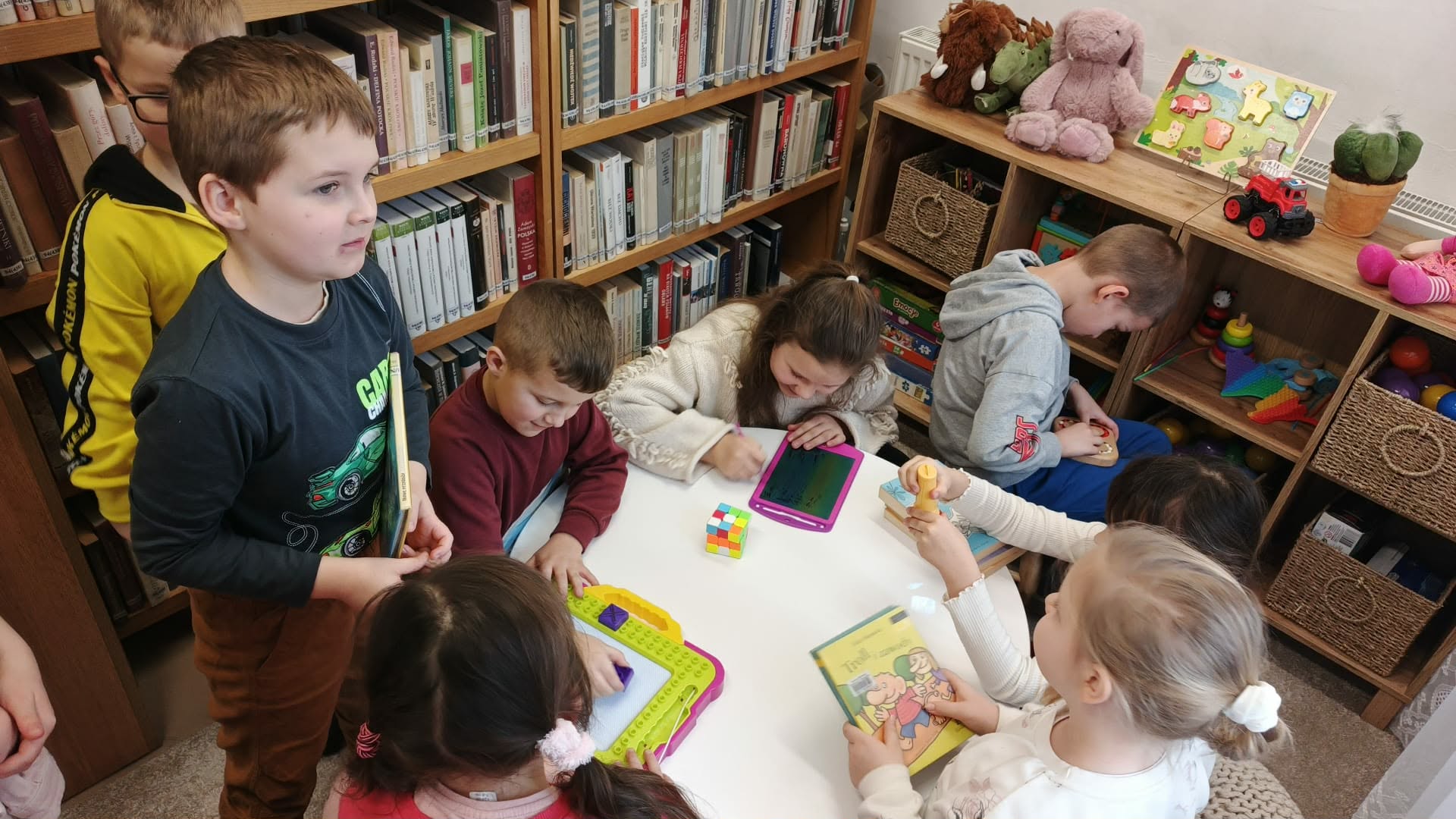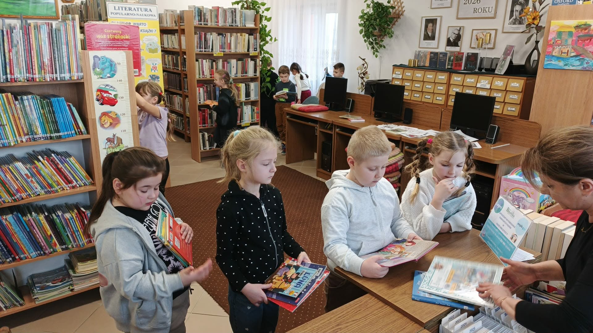 12.02 klasa 1a pod opieką pani Agnieszki Pauby i pani Arlety Pykalo odwiedziła Gminną Bibliotekę Publiczną w Strzegowie.