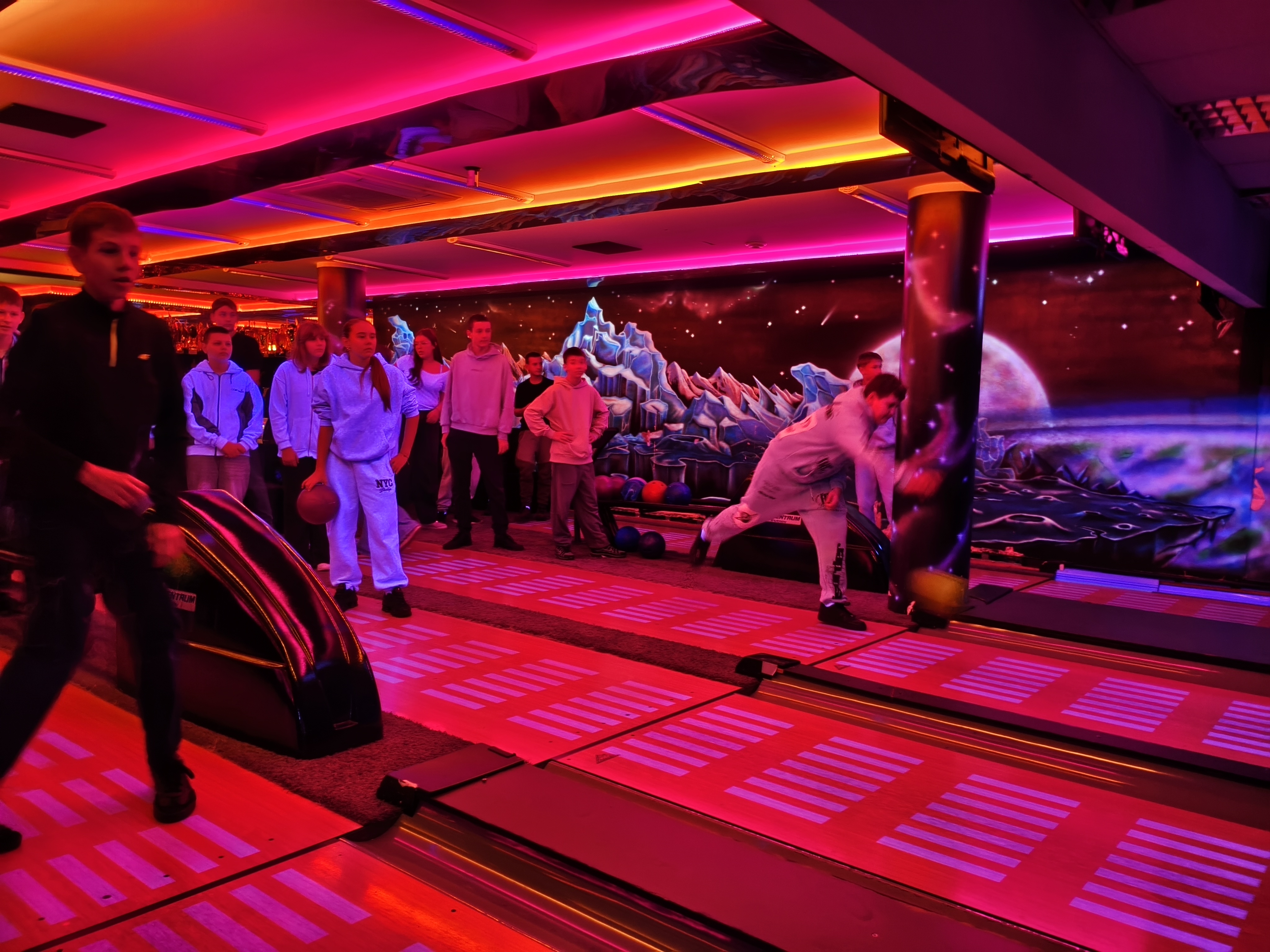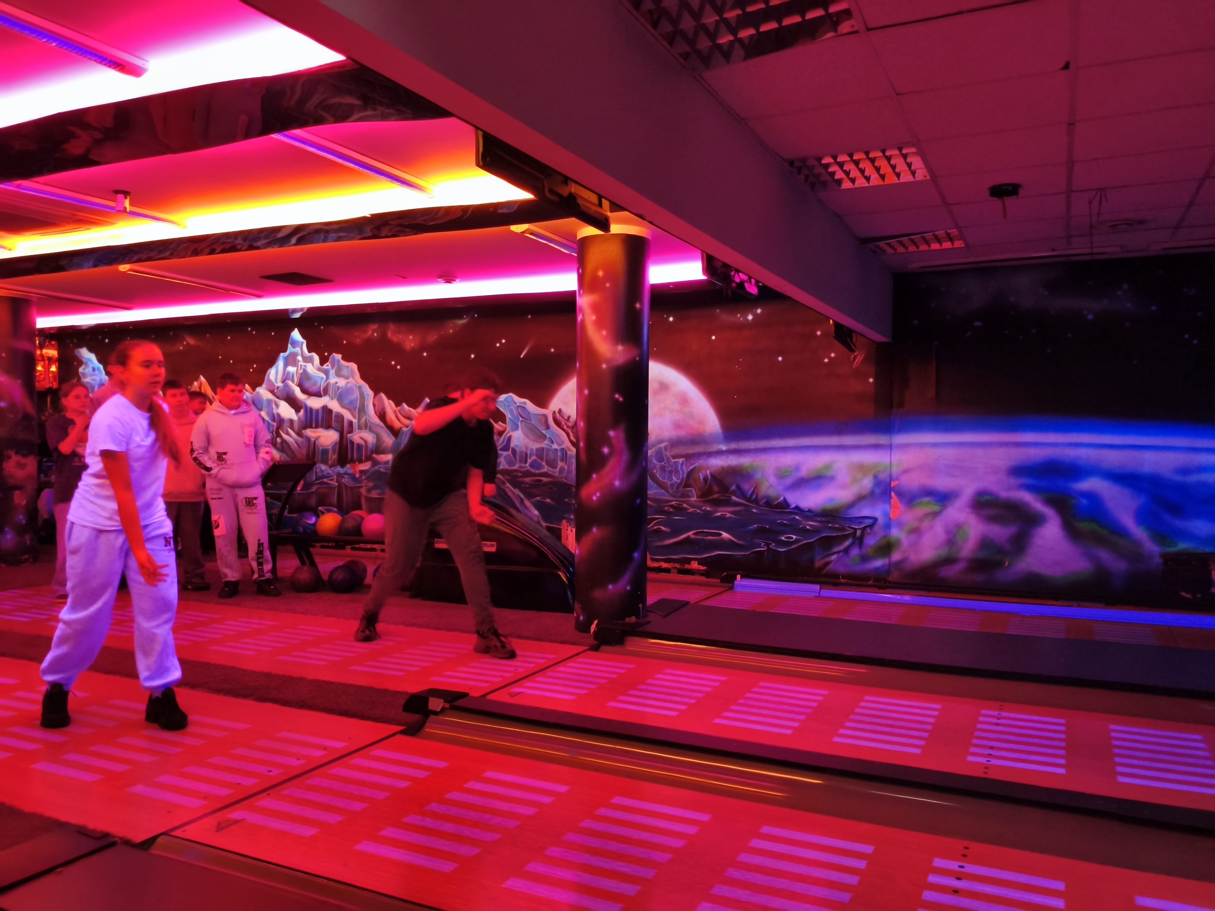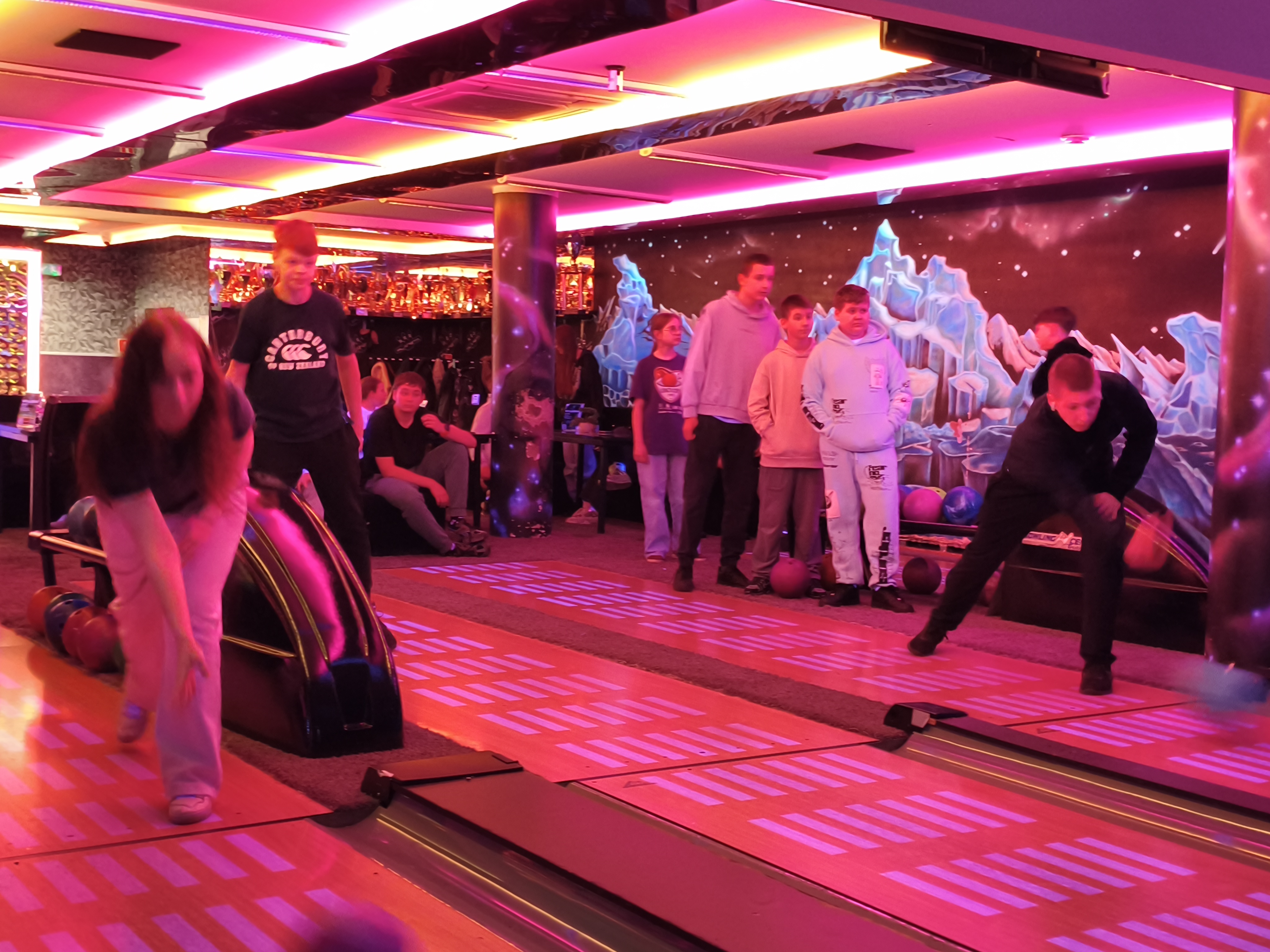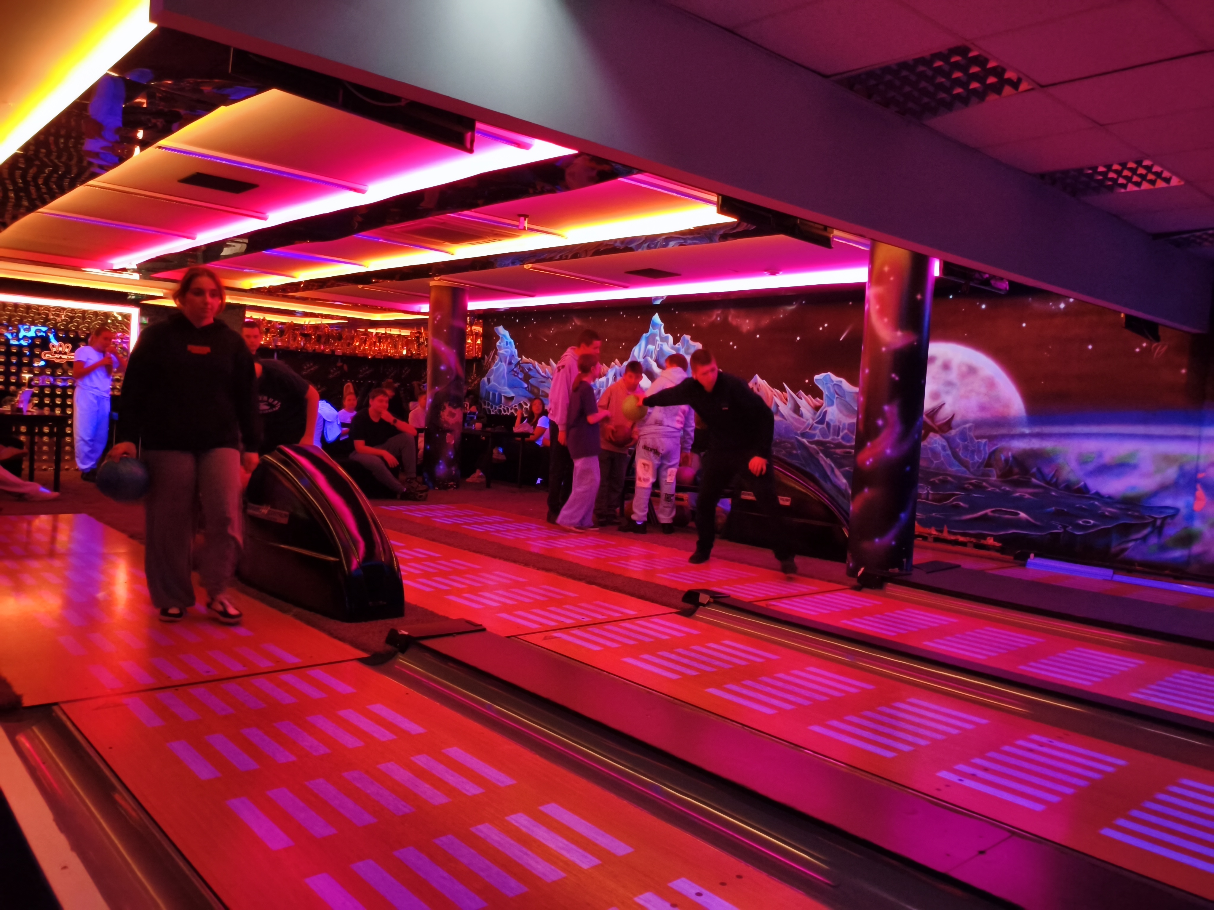 14 listopada klasa 7a SP i 2 LO wybrały się na kręgle do Centrum Rozrywki "Planeta" w Mławie. Wyjazd był nagrodą w konkursie na patriotyczną dekorację sali lekcyjnej. Uczniowie obu klas aktywnie spędzili czas i w miłej atmosferze mogli sprawdzić się w kręglarskich rozgrywkach. To była świetna zabawa, a zarazem dobra forma integracji międzyklasowej.