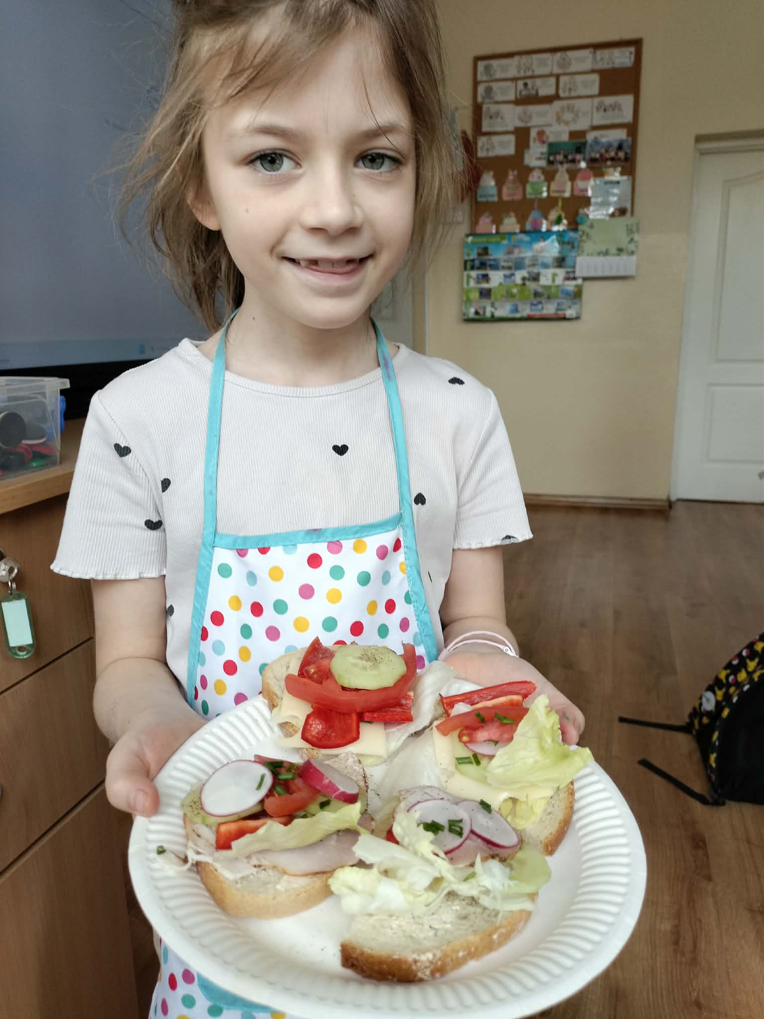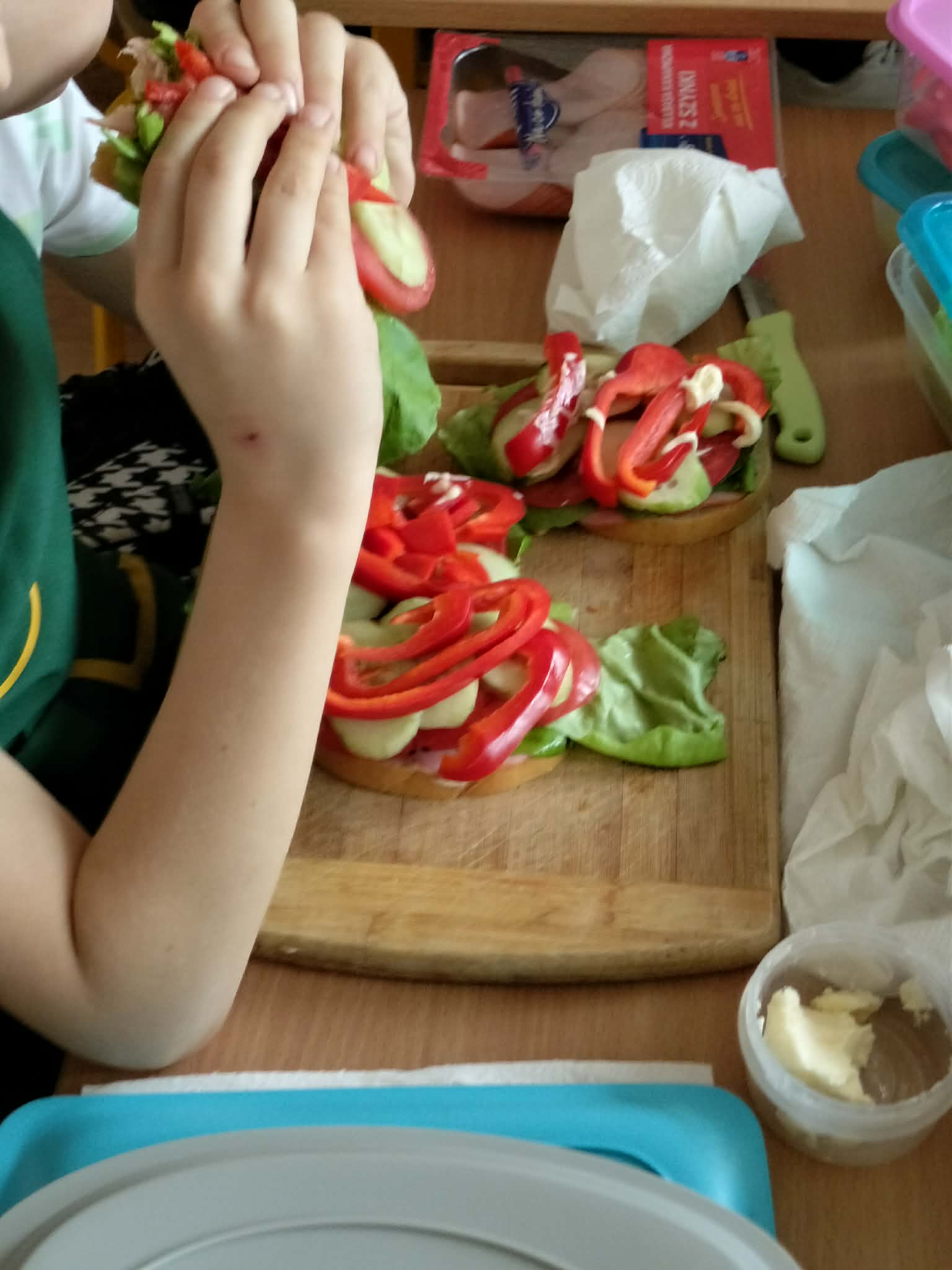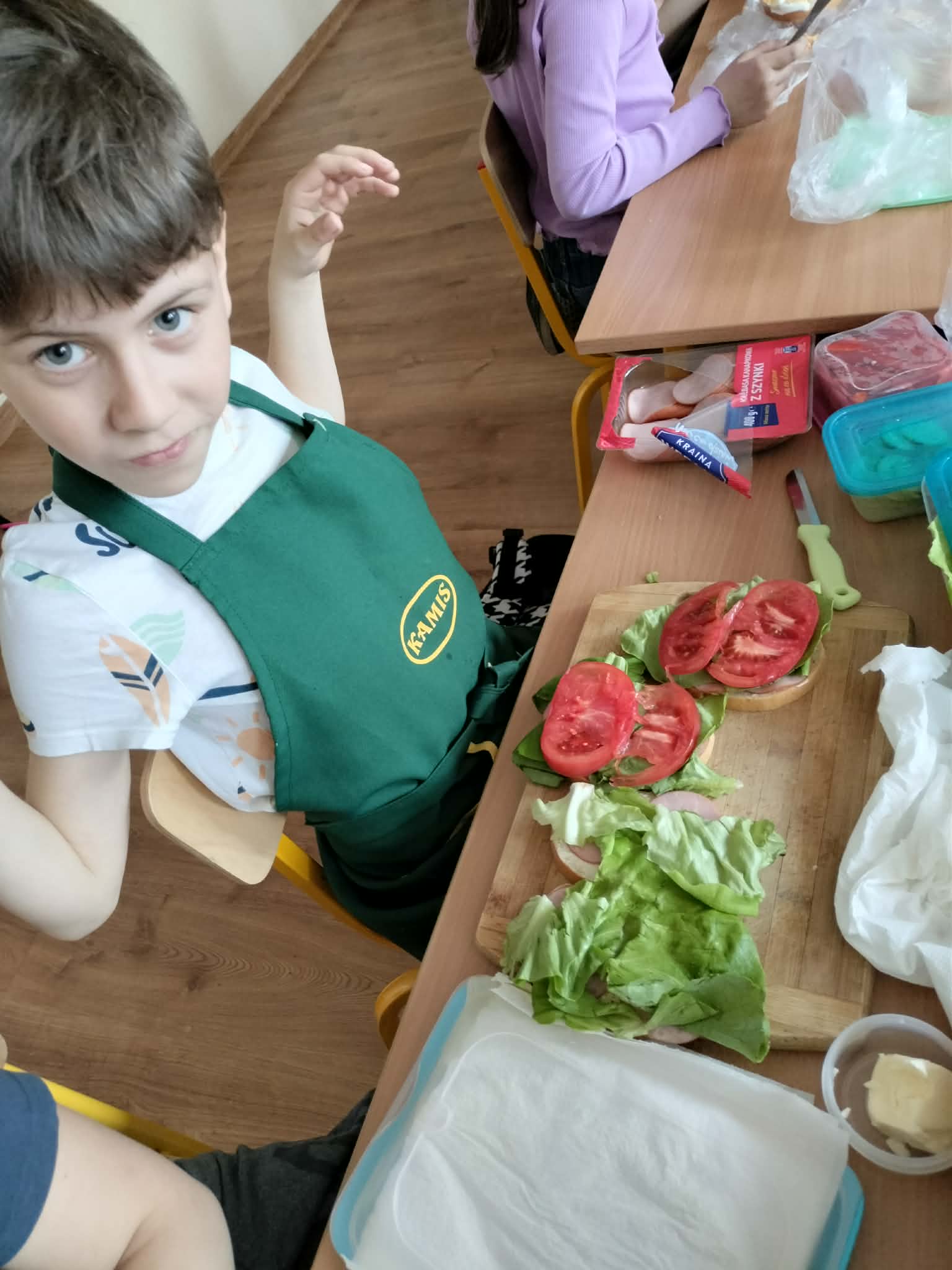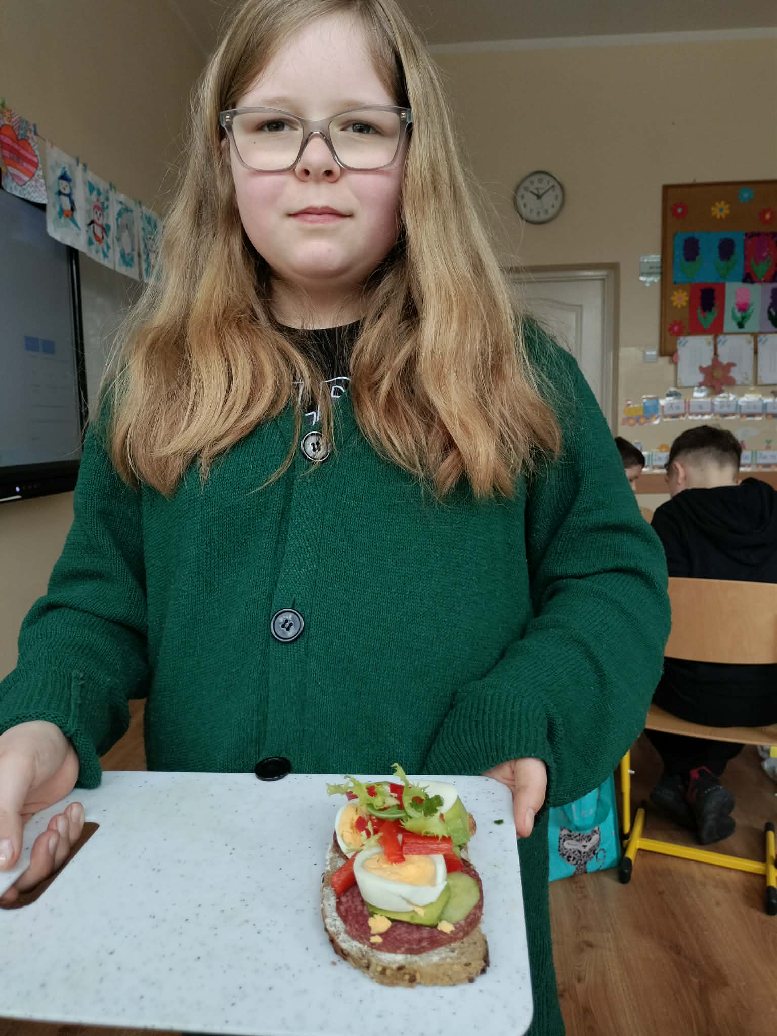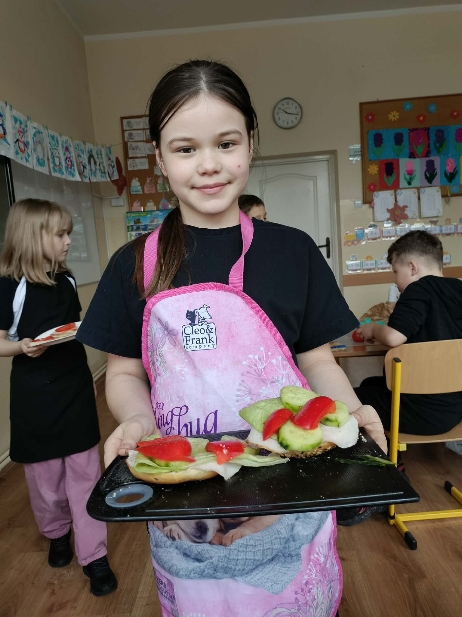 W ramach realizacji treści programowych z zakresu edukacji przyrodniczej i technicznej uczniowie klas 2a oraz 2c wzięli udział w zajęciach poświęconych zdrowemu odżywianiu oraz kształtowaniu praktycznych umiejętności kulinarnych. Podczas zajęć dzieci samodzielnie przygotowywały wiosenne kanapki, wykorzystując świeże warzywa, pełnoziarniste pieczywo oraz różnorodne dodatki. Uczniowie przypomnieli sobie zasady higieny podczas przygotowywania posiłków, a także poznali wartości odżywcze wybranych produktów. Zajęcia miały na celu: