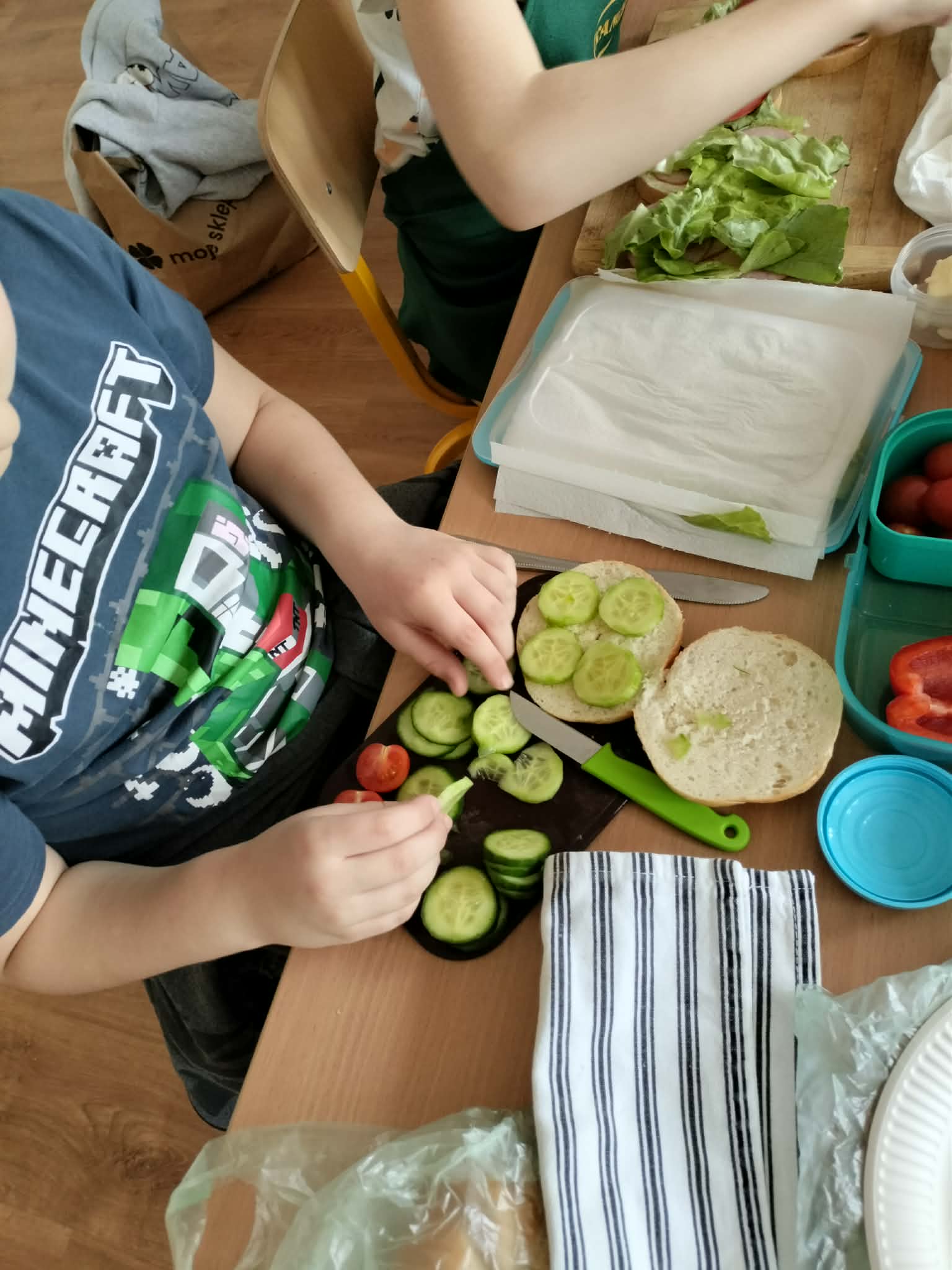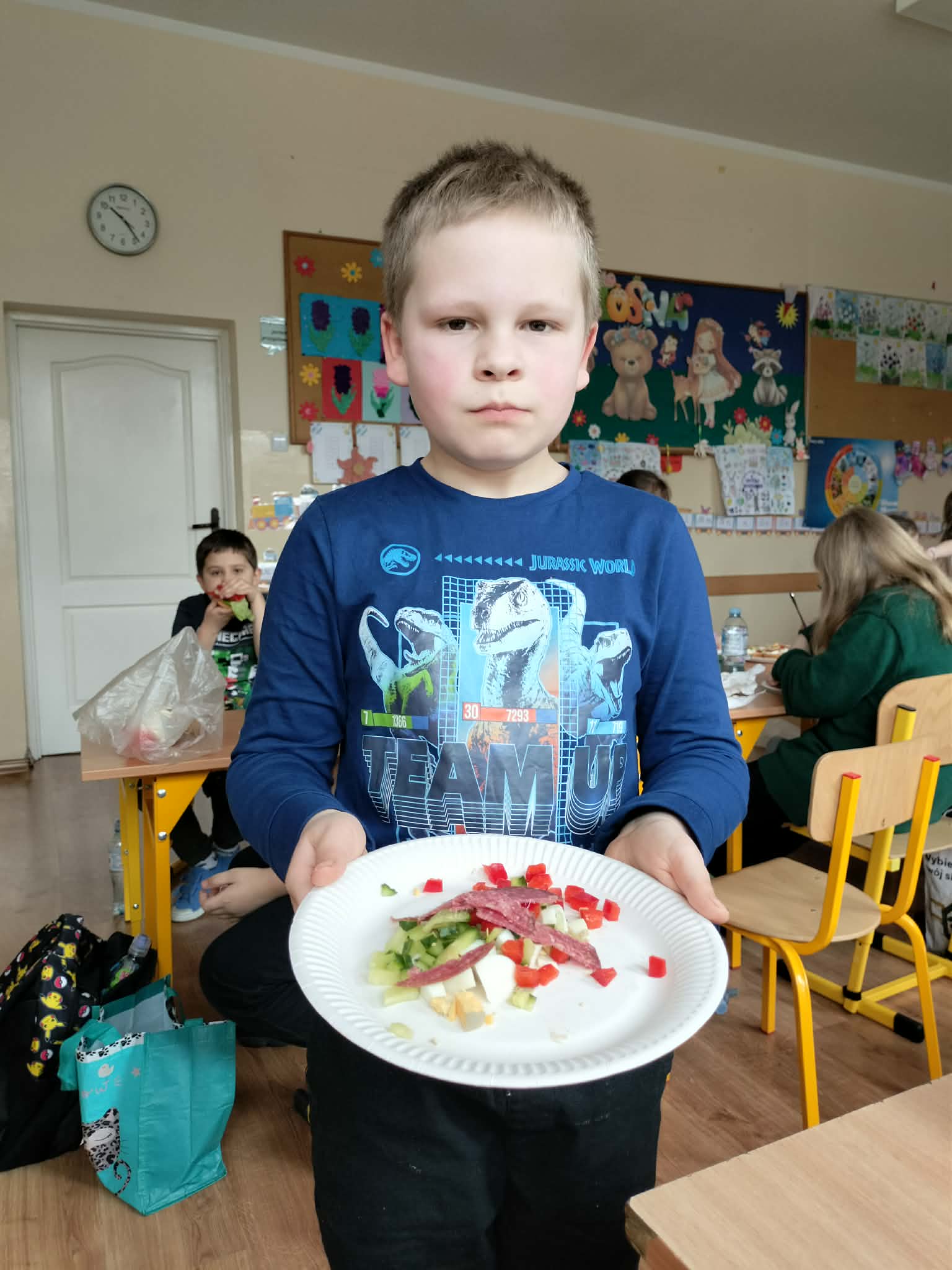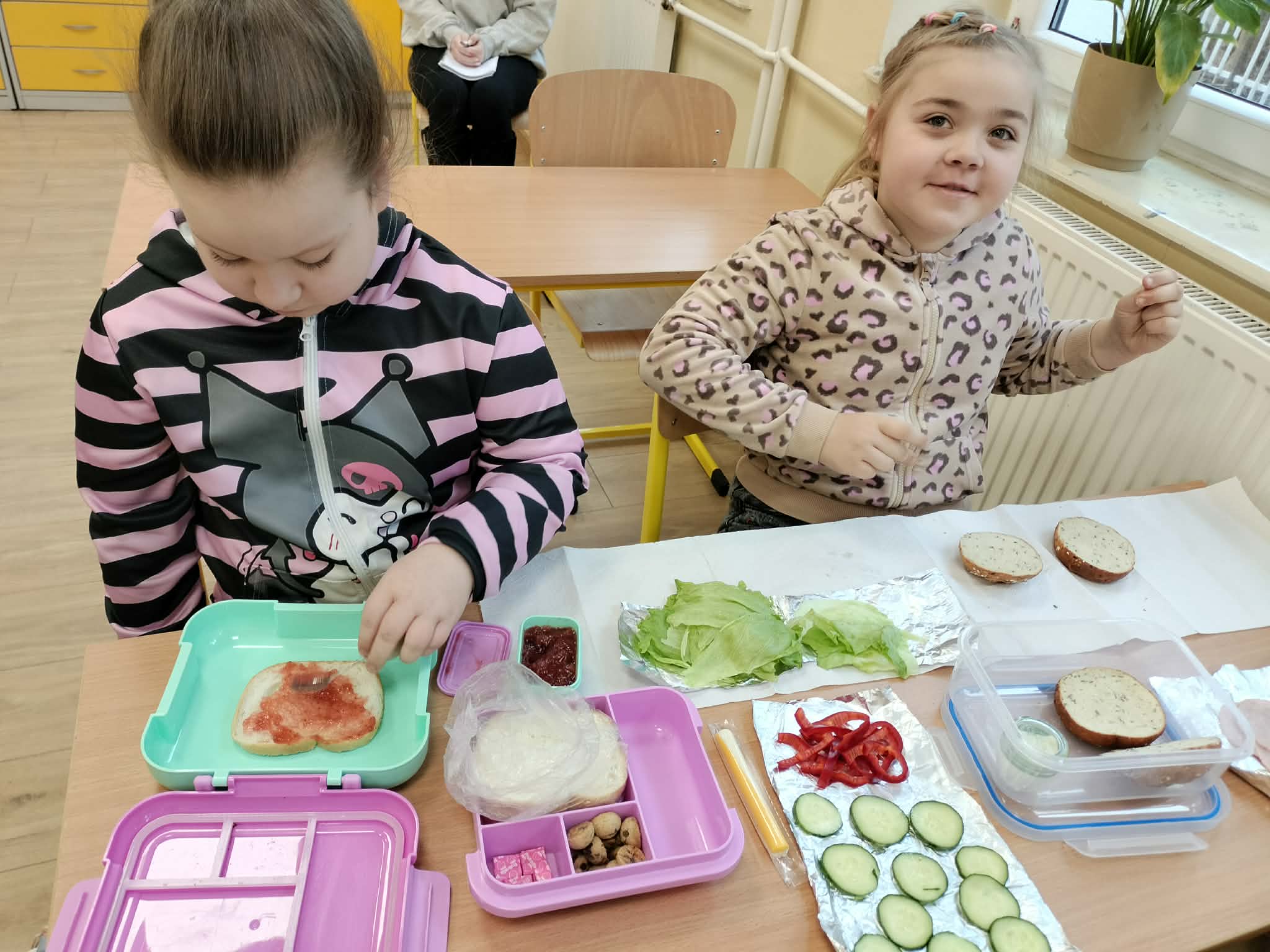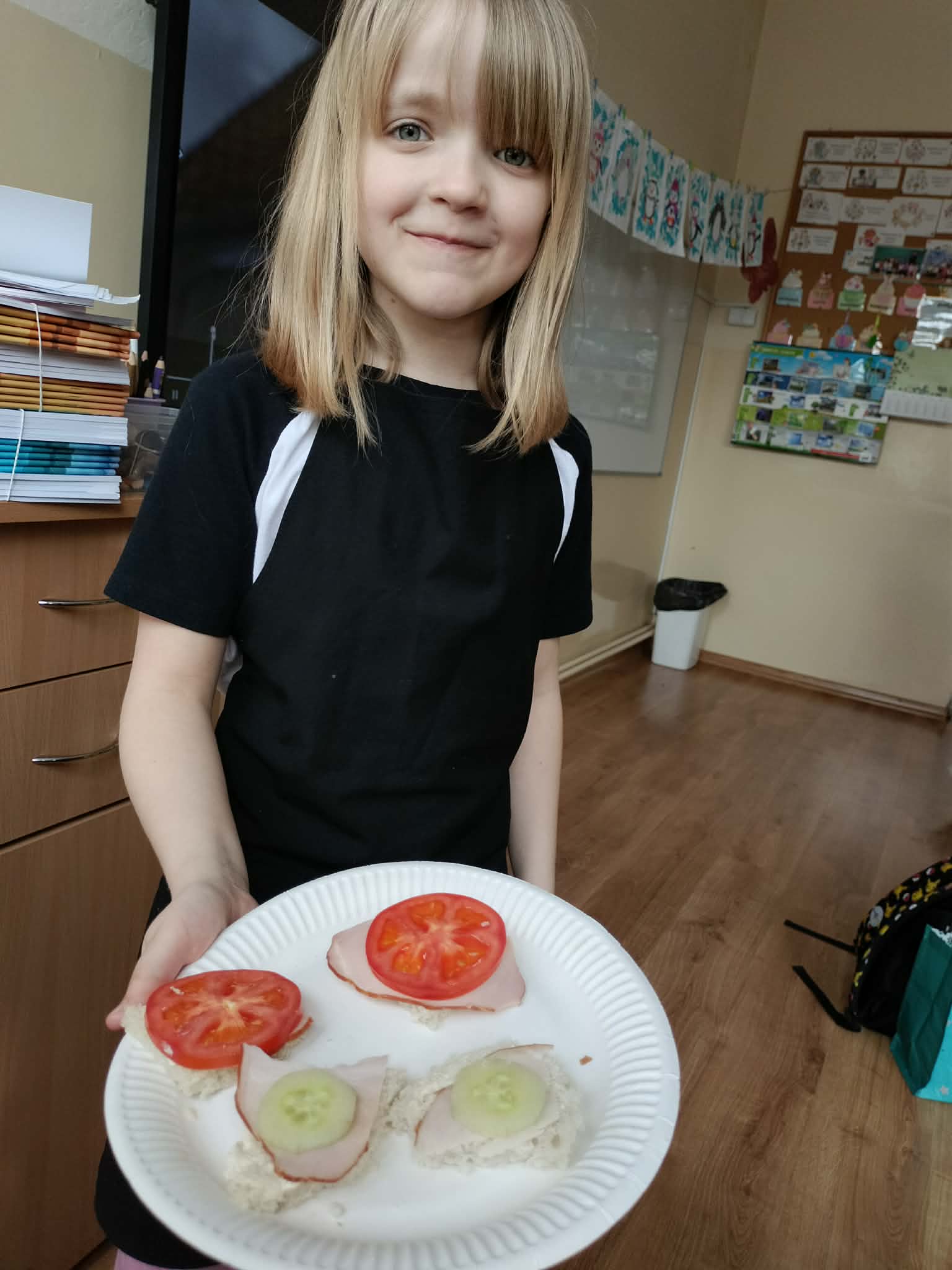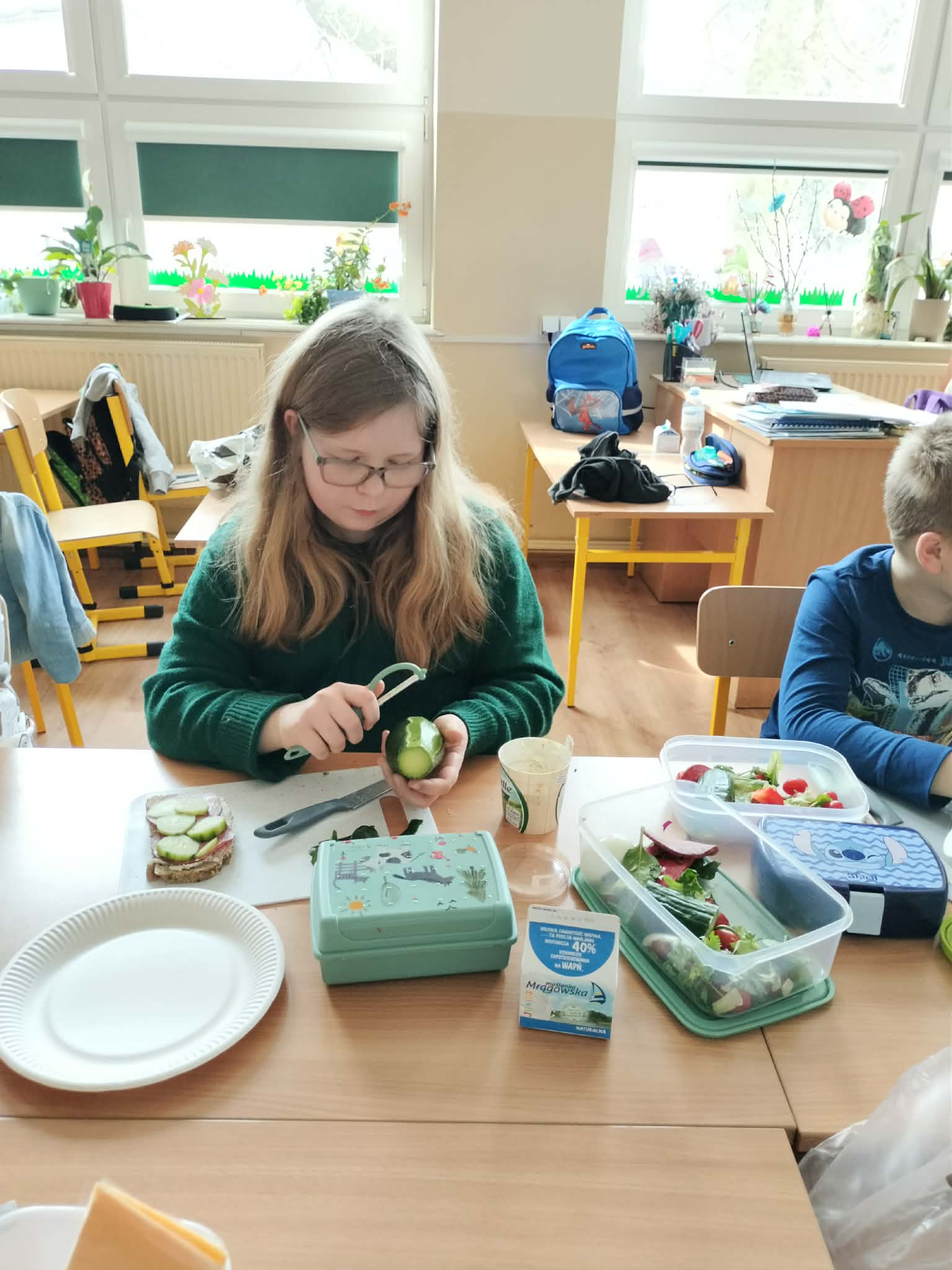 W ramach realizacji treści programowych z zakresu edukacji przyrodniczej i technicznej uczniowie klas 2a oraz 2c wzięli udział w zajęciach poświęconych zdrowemu odżywianiu oraz kształtowaniu praktycznych umiejętności kulinarnych. Podczas zajęć dzieci samodzielnie przygotowywały wiosenne kanapki, wykorzystując świeże warzywa, pełnoziarniste pieczywo oraz różnorodne dodatki. Uczniowie przypomnieli sobie zasady higieny podczas przygotowywania posiłków, a także poznali wartości odżywcze wybranych produktów. Zajęcia miały na celu: